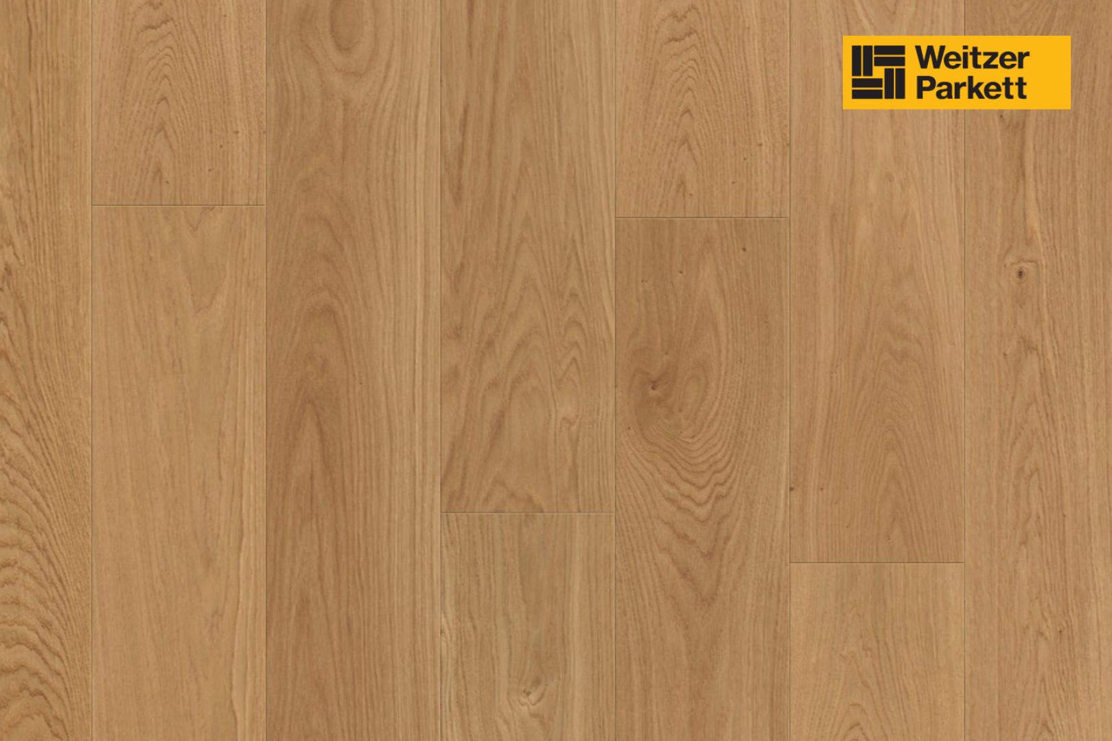 Mit einer Gesamtstärke von 13 mm und patentierten Double-Click-System-Verbindung erweitert Weitzer Parkett sein Sortiment an Parkettböden von außergewöhnlicher Qualität made in Austria. Vollflächig verklebt wird die Diele 2245 zum Flüster-Parkett. Das zudem pflegefreie Parkett wird Ihr Herz höher schlagen lassen. Durch die innovative Mehrfach-Versiegelung bleibt Ihr Parkett dauerhaft schön und muss nur noch schonend gereinigt werden. Das gleichmäßige, dezente Gesamtbild der Diele 2245 Eiche ist zeitlos und harmoniert vorzüglich mit jedem Einrichtungsstil.